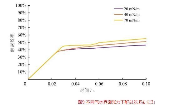 图9不同气水界面张力下解封效率变化图