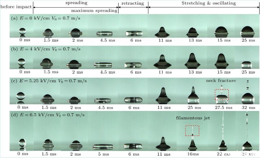 可视化实验方法研究电场作用下液滴撞击表面的动态行为(二)