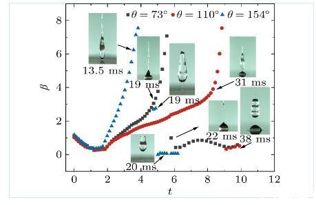 图10液滴拉伸系数与不同接触角的关系(We=17.8、Cae=0.068)