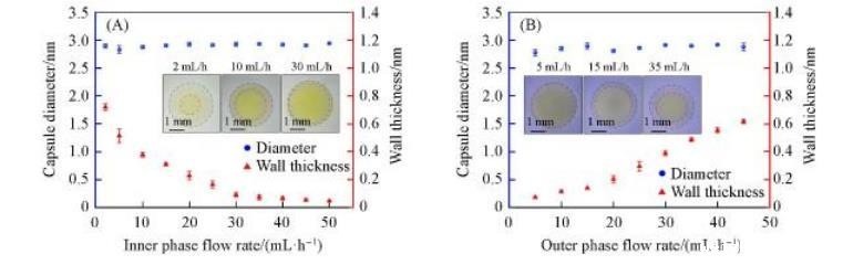 2.3内相/外相流速对水/水微囊直径和壁厚的影响