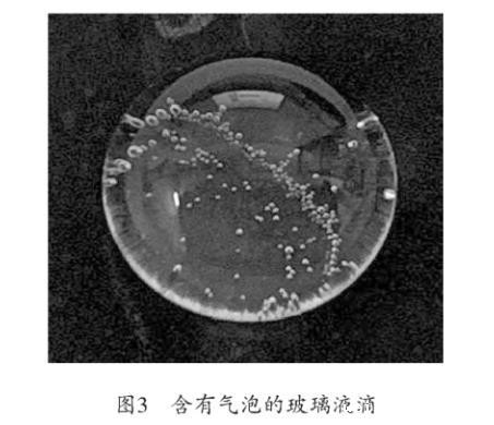 玻璃试样要保证化学组成的均匀性,且内部不能包含缺陷(气泡、结石和条纹等)。如有气泡会导致玻璃熔体体积失真,如图3所示。气泡中的气体受热会进一步膨胀,使玻璃液滴体积增大,导致玻璃液滴在测试温度下的密度偏低,最终影响玻璃熔体表面张力的测试结果。玻璃条纹和结石等缺陷也是玻璃成分不均的表现,在受热条件下影响玻璃熔体液滴形态,导致无法获得中心旋转轴对称的玻璃液滴,因此应选择无内在质量缺陷的玻璃。