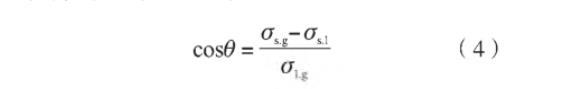 承托板在测试过程中与玻璃熔体产生直接接触,承托板材质首先要满足测试温度的要求,符合玻璃熔体测试温度要求并易获得的材质有铂铑合金、石英、刚玉和石墨。材料表面与玻璃熔体产生润湿与非润湿问题,润湿能力由相邻两相的自由表面能决定,用表面张力的大小来表示[9]。当固体、液体和气体三者之间相互作用力达到平衡时,就必须服从式(4):