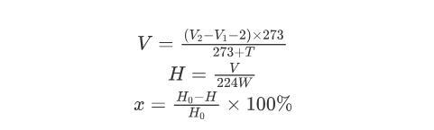 式中:V为在1个标准大气压、273 K的条件下生成氢气的体积,mL;V 1为反应前碱式滴定管的读数,mL;V 2为反应后碱式滴定管的读数,mL;T为反应温度,℃;H为反应产物的含氢量,10-2 mol/g;W为样品质量,g;x为MDHM转化率;H 0为反应前产物的含氢量,10-2 mol/g。