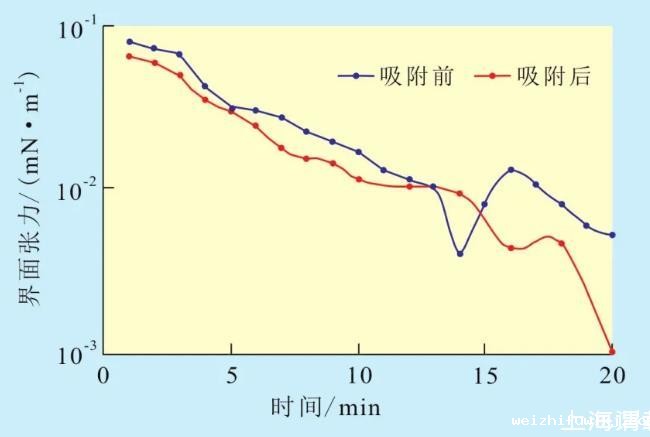 图1磺基甜菜碱泡沫剂吸附前后与原油的界面张力