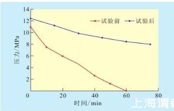 由注入井ST2-0-206泡沫驱试验前后的压降曲线可见:试验前,关井后井口压力迅速下降,60 min后压力由初期的11 MPa降为0,说明该井储层高渗透条带发育;注入氮气泡沫体系后,压力下降程度变缓,75 min后压力由关井初期的12.5 MPa降为8 MPa(图4),也说明该氮气泡沫体系在地层中形成了稳定的泡沫,对高渗透条带起到了有效封堵。