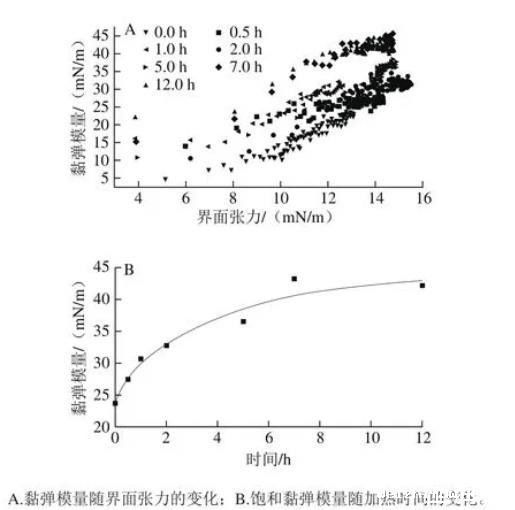 图4纤维化过程中β-乳球蛋白在油/水界面的扩张流变学特性