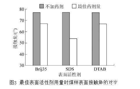 图3最佳表面活性剂用量时煤样表面接触角的对比