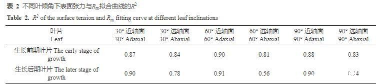 表2不同叶倾角下表面张力与Rm拟合曲线的R2
