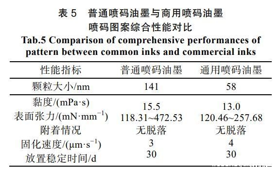 表5普通喷码油墨与商用喷码油墨喷码图案综合性能对比