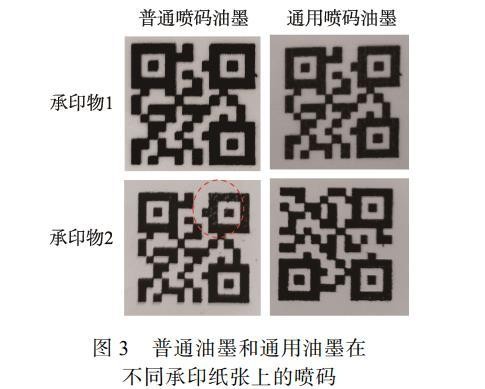 图3普通油墨和通用油墨在不同承印纸张上的喷码