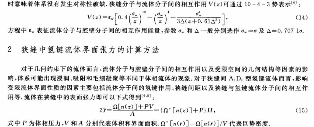 影响狭缝间氢键流体气液平衡界面张力的因素有哪些(一)