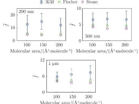 表1不同密度LE相膜上的颗粒与膜的接触角θ、浸没角ϕ及颗粒暴露在气相中的高度d为消除粒径影响,下文将转变为无量纲阻力系数为颗粒运动速度)求得。Stone解对于任意均适用。