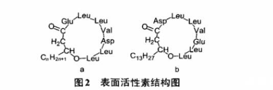 实验所用的表面活性素样品结构如图2所示,脂肪酸链碳数分别为12、13、14、15、16。