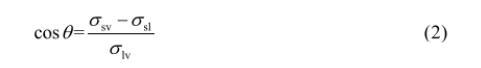 润湿三相线交汇处的固-液界面张力(σsl)、液-气界面张力(σlv)及固-气界面张力(σsv)可决定润湿性的好坏,当润湿过程达到平衡时即可得到Young’s方程。