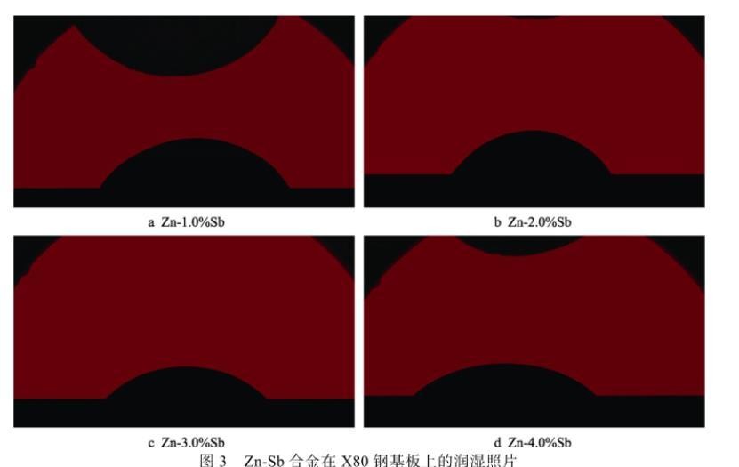 2.2 Zn-Sb/X80钢体系的润湿性分析