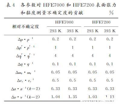 表4各参数对HFE7000和HFE7200表面张力和黏度测量不确定度的贡献%