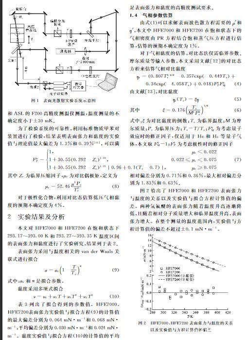 本文对HFE7000和HFE7200在饱和状态下293.17~393.00 K和293.27~393.35 K温度区间的表面张力和黏度进行了实验研究,结果列于表2。