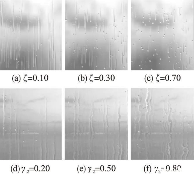 在未来工作中,将继续对玻璃窗上水滴的运动控制进行研究,包括玻璃窗表面粗糙度对水滴尾部褪色的影响,玻璃窗平移或旋转对水滴运动行为的影响等,完善水滴运动细节,进一步在流固界面动力学模拟方面做有益探索。