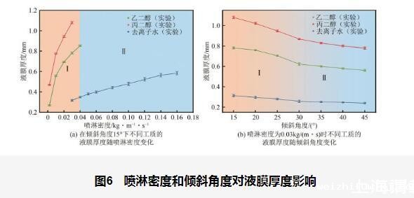 图6喷淋密度和倾斜角度对液膜厚度影响