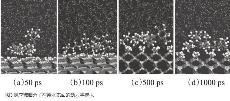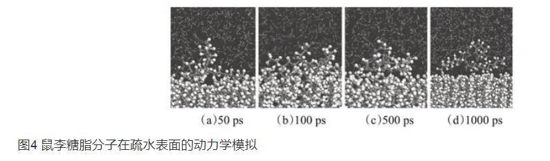 图4鼠李糖脂分子在疏水表面的动力学模拟