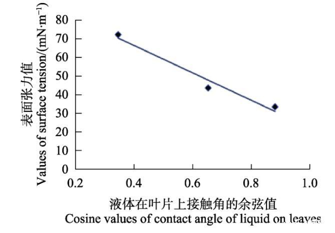 表1液体的表面张力值及其在芒果叶片上的接触角
