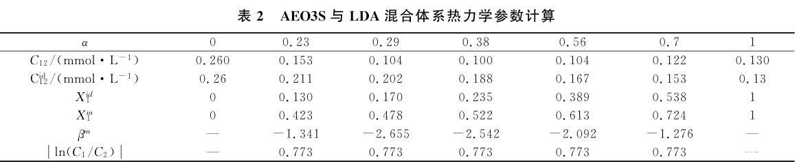 表2 AEO3S与LDA混合体系热力学参数计算