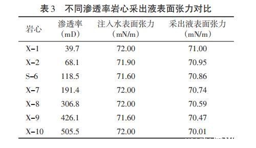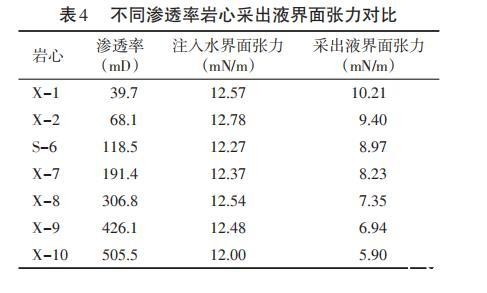 表4不同渗透率岩心采出液界面张力对比