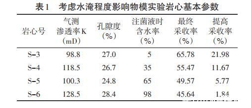 表1考虑水淹程度影响物模实验岩心基本参数
