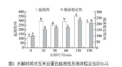 图1水解时间对玉米谷蛋白起泡性及泡沫稳定性的影响