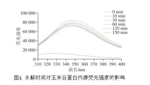 图4水解时间对玉米谷蛋白内源荧光强度的影响