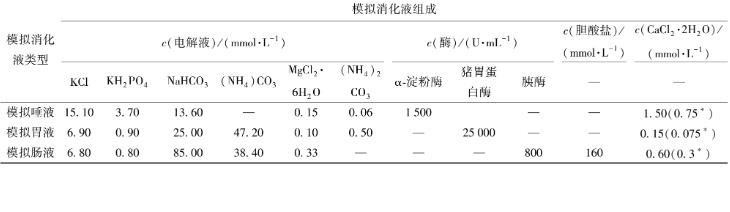 括号中带*数字为最终消化混合物中相应的Ca2+浓度。