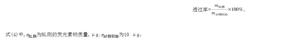 式(4)中,mBL侧为BL侧的荧光素钠质量,μg;mAP侧初始为10μg。