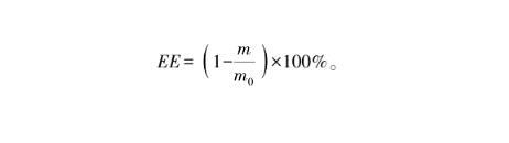 式(1)中,EE为包封率,%;m0为LOPs加入内水相的质量,g;m为从外水相中获得的游离LOPs的质量,g。
