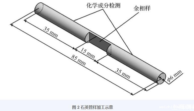 每个石英管样长度约为85 mm,直径约为6 mm,试样加工如图2所示。取中间位置制备金相样;取两头中光洁度较好、致密度较高的一头进行表面磨光,车取直径为4 mm的氧氮气体棒;最终余料取屑用于分析钢中剩余主要元素的质量分数。金相样经过线切割、精细磨抛后,用ASPEX扫描电镜检测试样,并对扫描结果进行分析,统计每个试样中氧化物夹杂的数量密度和平均尺寸。