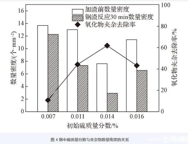 图4钢中硫质量分数与夹杂物数量密度的关系