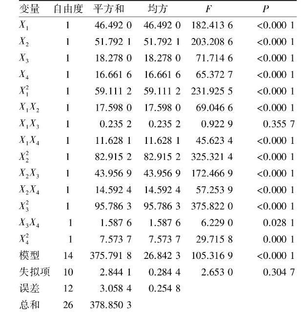 影响因素之间的交互作用除X1X3影响不显著、X3X4影响显著外,其余交互项影响极显著。