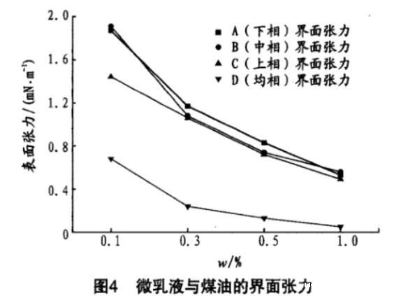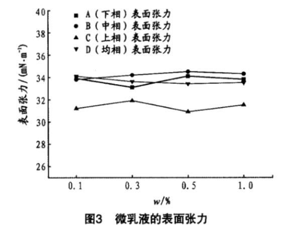 对上述微乳液进行了表/界面张力的测试,结果见图3。