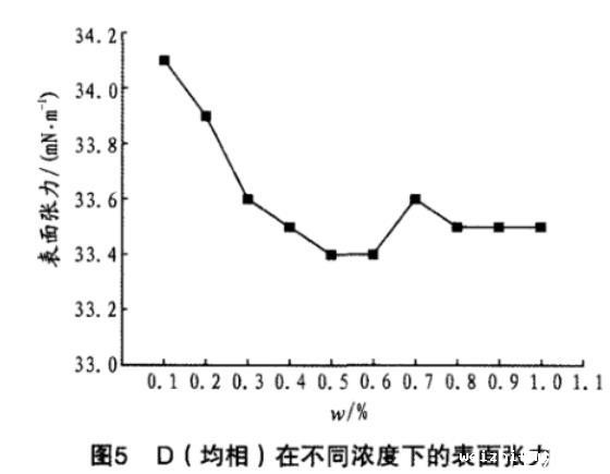 D(均相)在不同浓度下的表面张力见图5。