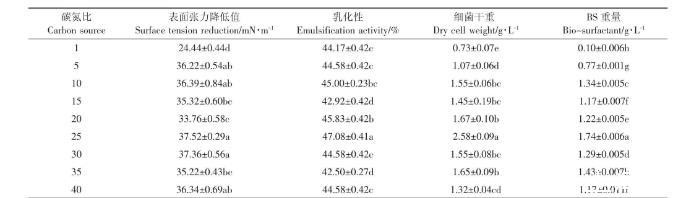 表5碳氮比对147细菌生长以及生物表面活性剂产量的影响