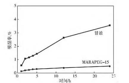 MARAPEG-15和甘油的吸湿性能和保湿性能见图3、图4。
