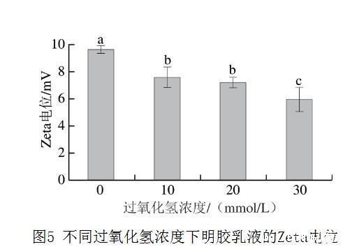 不同浓度的过氧化氢模拟氧化对猪皮明胶乳化性能、界面张力、Zeta电位的影响(三)