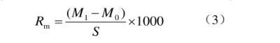 采用浸渍法并稍作改进。药液配制方法同1.2.2节。采集苹果成熟叶片,避开边缘及褶皱处将叶片打成直径为3.5 cm的圆形平整叶碟,计算叶碟面积(S)为9.62 cm2。浸渍前,用电子天平读取叶碟初始质量(M0,g),用镊子夹持叶碟完全浸入药液3 s后取出,垂直悬置待不再有液滴滴下时读取载液后质量(M1,g),根据公式(3)计算最大持留量(Rm)(mg/cm2),每处理重复10次,结果取平均值。