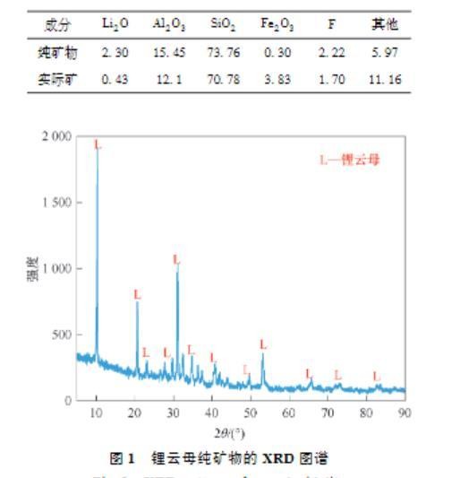 表1锂云母纯矿物及实际矿化学多元素分析结果