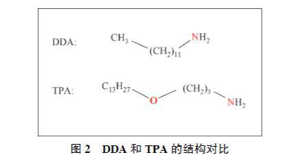 试验所用药剂NaOH、H₂SO₄均购于广州试剂厂;DDA购于上海阿拉丁生化科技股份有限公司,TPA为工业来源药剂,购买自山东派尼新材料股份有限公司。试验用水为超纯水,电阻率为18.25 MΩ·cm。捕收剂结构如图2所示。