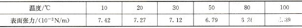 表1-2水在不同温度下的表面张力