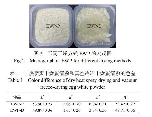 2.2不同干燥方式蛋清蛋白的外观和色泽分析