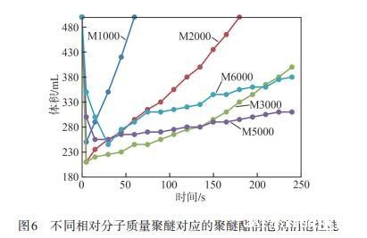 图6不同相对分子质量聚醚对应的聚醚酯消泡剂消泡性能