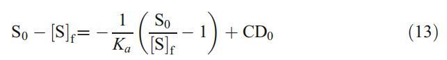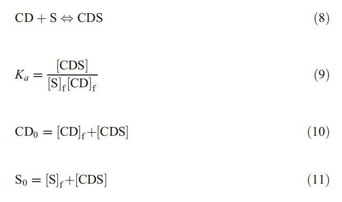 其中,CD/S、[S]f、[CD]f、CD0和S0分别为包合物、游离表面活性剂、游离CD、总CD和总表面活性剂浓度。通过组合和重新排列等式。9-11,我们得到了以下关系式: