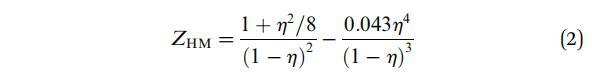 式中,η是表面堆积分数,它可以用颗粒数密度(p)和单个颗粒的体积直径(d)表示为η=(π/4)pd2。对于我们的实验,η介于0和0.91之间。ZHM的相应值介于1和96之间。