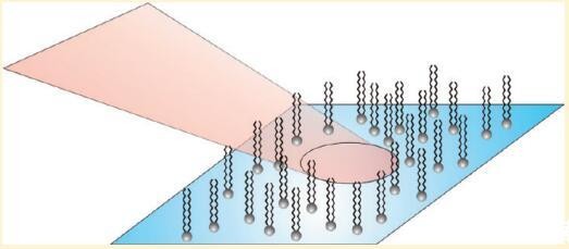 表面活性剂DPPC(1,2-二棕榈酰-sn-甘油-3-磷酸胆碱)、1-十二醇(C12H25OH)和棕榈酸(C15H31COOH)分别从Avanti极性脂质、Fluka和Sigma-Aldrich中获得,使用时无需进一步纯化。单分子膜从氯仿溶液(DPPC)中扩散∼0.5毫米,1-十二醇∼3毫米,棕榈酸∼2毫米)在空气中−H2O(微孔,18MΩcm)界面。通过两种方法制备具有不同表面密度的单分子膜:通过在水面上散布0.5μL液滴的数量或通过压缩该层来控制每个分子的面积。使用商用(新利18澳门 Inc.)张力计,使用指针测量表面压力。由于椭偏测量结果取决于单层制备的方式,我们为每种类型的实验提供了制备的明确描述。